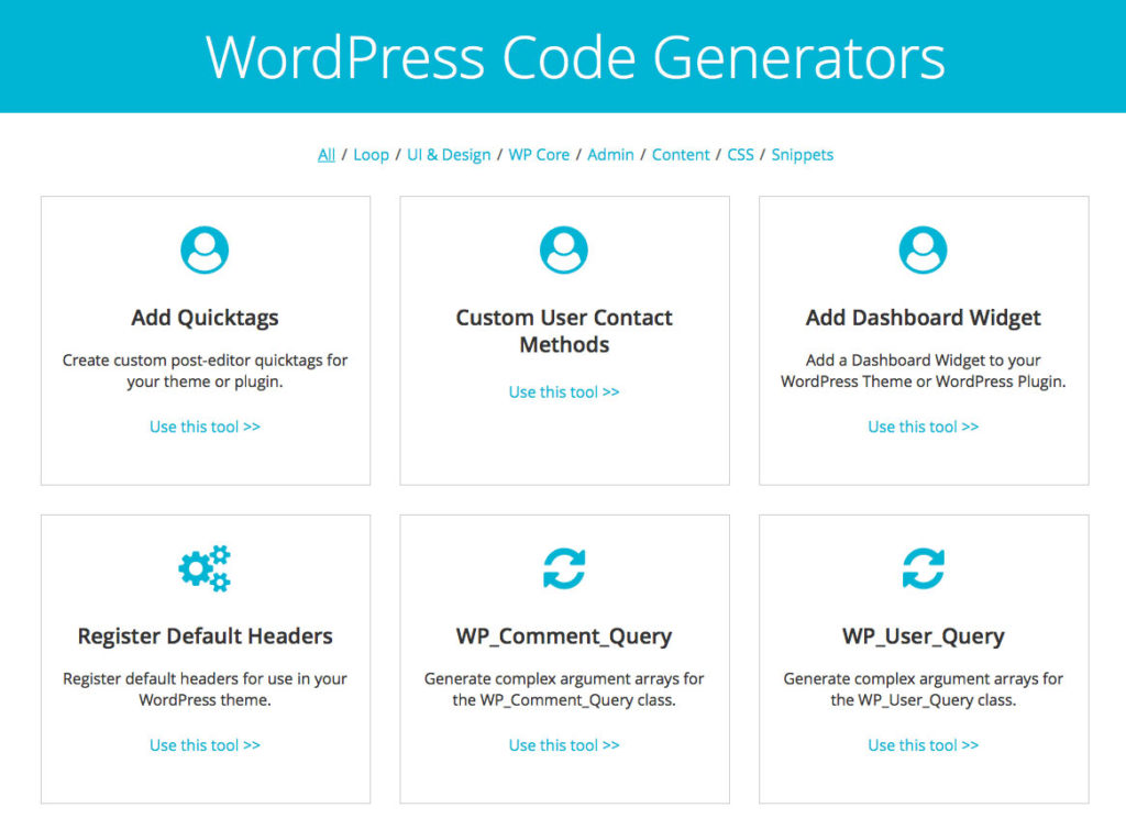 As WordPress developers, we’re always looking for ways to speed up our work flow and shorten development time. So we were super excited when someone told us that the developers at Nimbus Themes had created a set of WordPress Code Generators. This set of tools is not only a great way for experienced developers to save time, but they are extremely useful for those who are new to WordPress coding.